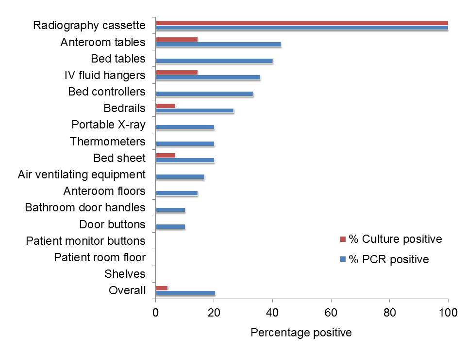 Figure: Contamination on the environment with MERS-CoV, by sampling method and site.