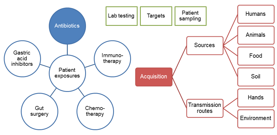 - I presented a visual framework of drivers for CDI (see Figure 1). This was to highlight that antibiotics form part of a complex network of CDI drivers. Which is most important? We don’t really know, but I argued that acquisition trumps antibiotic exposure!