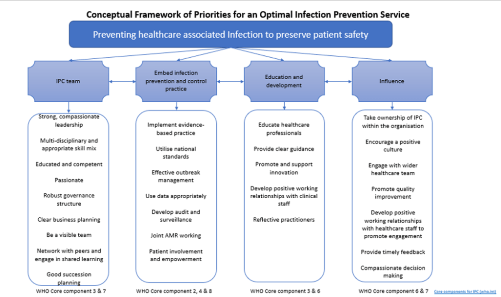 This framework was deliberately conceptual, as one of the core objectives of this study was to define an optimal IPC service in different contexts and settings. We didn’t want a framework that would only work for acute settings or just for community, it needed to work for all IPC services and settings.